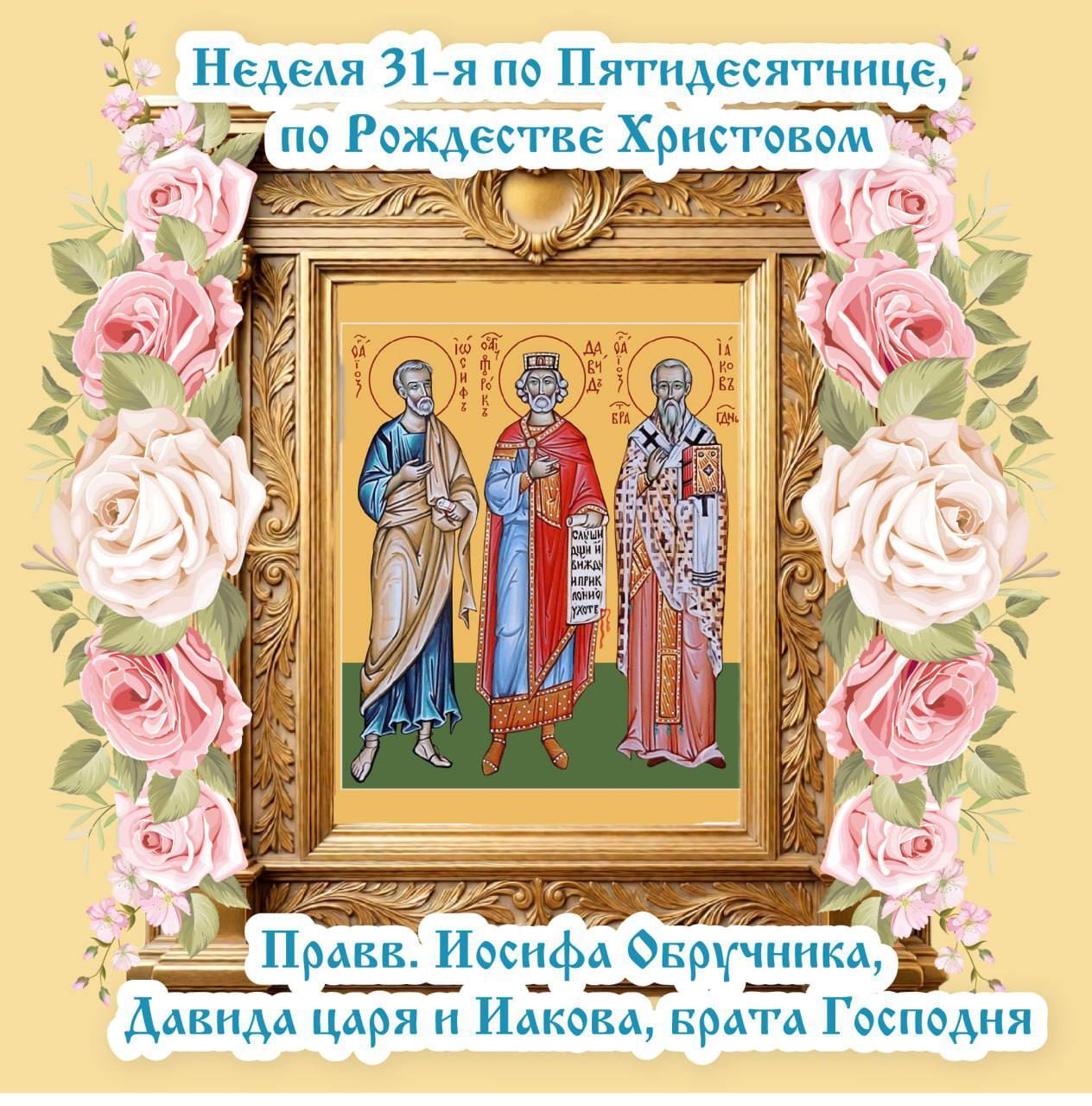 Благовеству́й, Ио́сифе,/ Дави́ду чудеса́ Богоотцу́,/ Де́ву ви́дел еси́ ро́ждшую,/ с па́стырьми славосло́вил еси́,/ с волсви́ поклони́лся еси́,/ А́нгелом весть прие́м;/ моли́ Христа́ Бо́га// спасти́ ду́ши на́ша.
